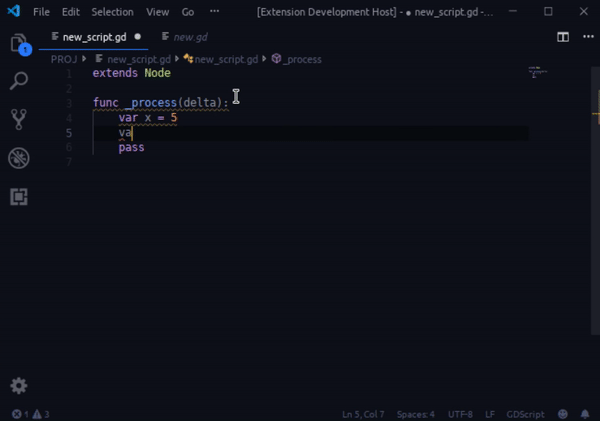 I started off by getting familliar with the existing godot tool for vscode, improving existing 'configuration' and 'grammers', we had to remove most of client side code because we wanted to rely on LSP server (Godot) for most of the task for two reasons.
