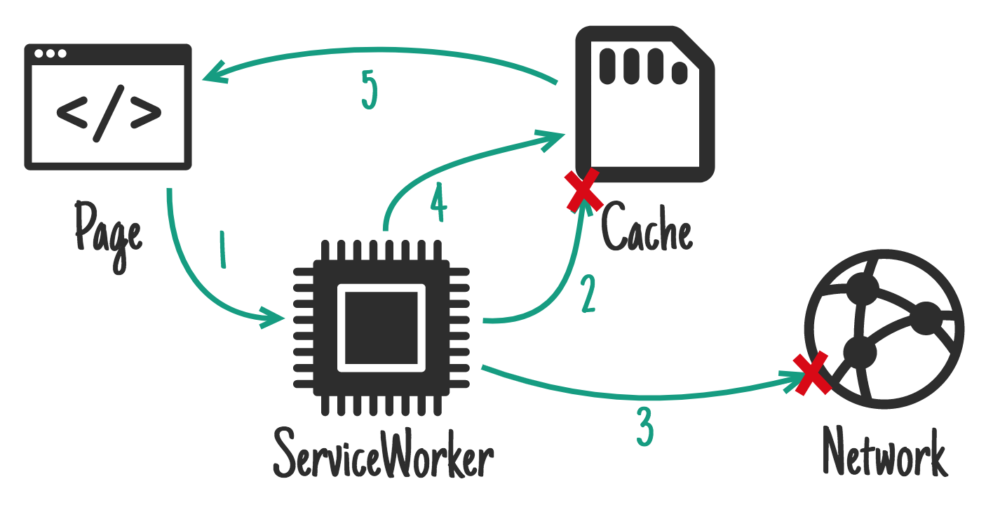 This requires the page to make two requests, one to the cache, one to the network. The idea is to show the cached data first, then update the page when/if the network data arrives.