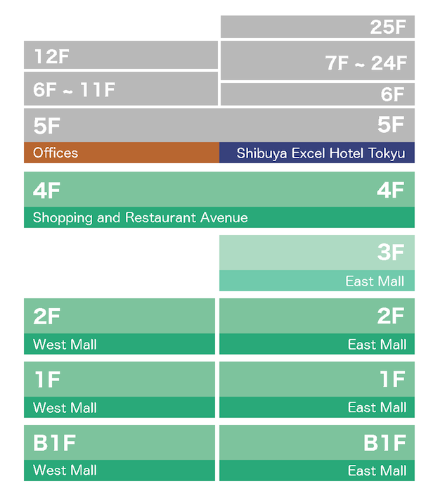 Shibuya Mark City is located directly across from Shibuya Station. From the JR Lines or Subways, follow the signs towards the Keio Inokashira Line (京王井の頭線). If you arrive by the Keio Inokashira Line, you will already be in the right building.