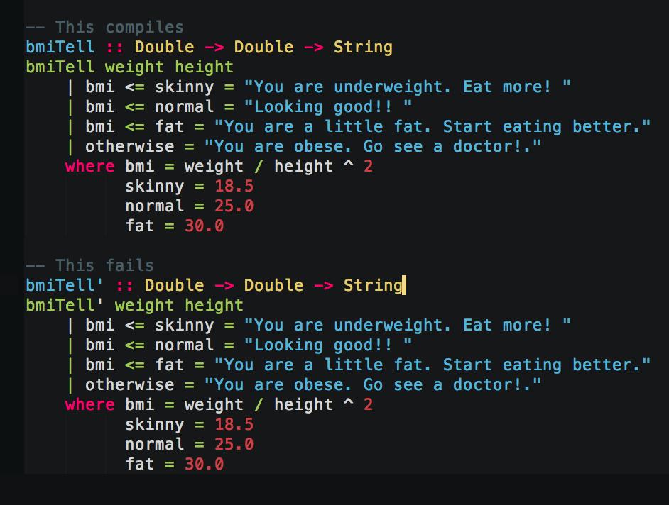 | | bmi <= fat = "You are a little fat. Start eating better." | |