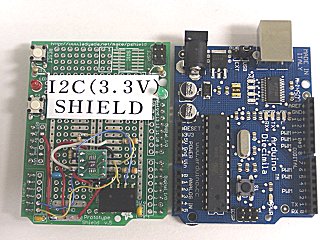I connected the Wii remote IR sensor to a miniaturized version of the circuit I made previously. I made the I2C voltage converter using a breadboard PCB for testing called the Prototype Shield.