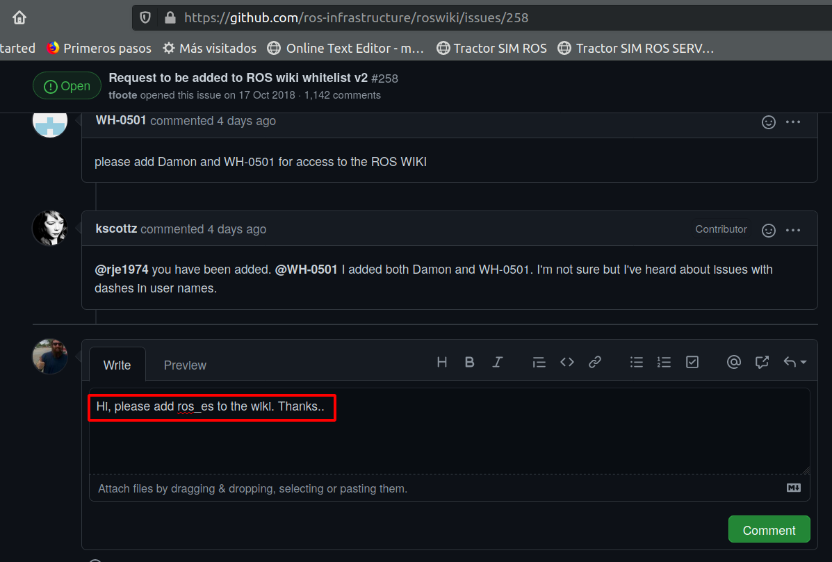 Hola, este es un tuto corto para crear tu usuario en la wiki de ROS y empezar con la edición de documentos.