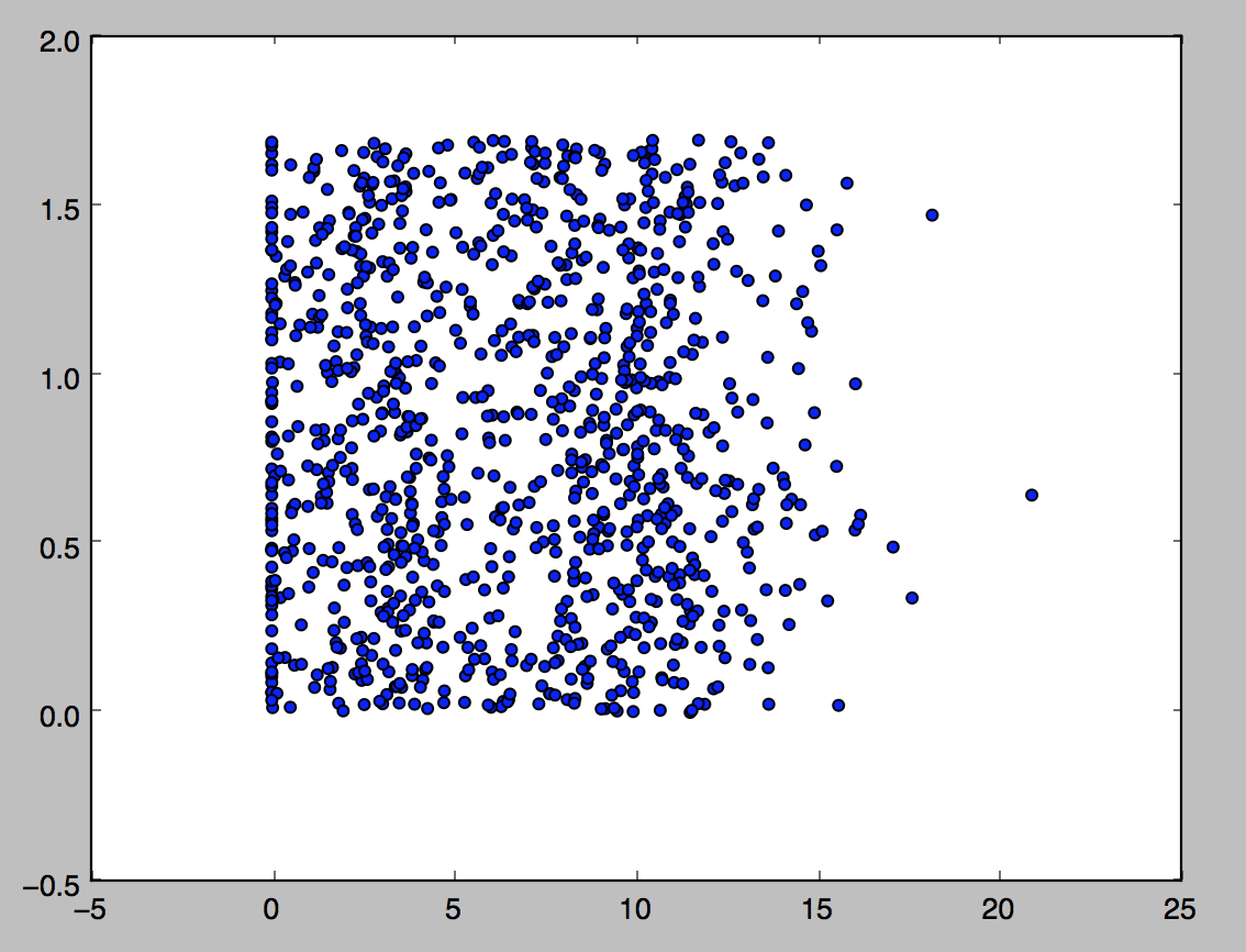 ax.scatter(datingDataMat[:, 1], datingDataMat[:, 2])